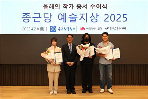 종근당홀딩스는 21일 서울 충정로 종근당 본사에서 임희재, 조기섭, 지알원 3인을 올해의 작가로 선정하고 ‘종근당 예술지상 2025 올해의 작가 증서 수여식’을 가졌다. 올해 선정된 작가들은 각기 다른 시선과 회화적 언어로 현대미술계에 새로운 담론을 제시해왔다는 점에서 높은 평가를 받았다.