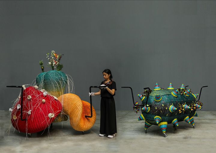 inventive installations that combine unconventional and mutable organic and